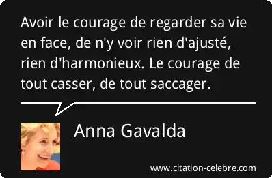 Avoir le courage de regarder sa vie en face, de n'y voir rien d'ajusté, rien d'harmonieux. Le courage de tout casser, de tout saccager.