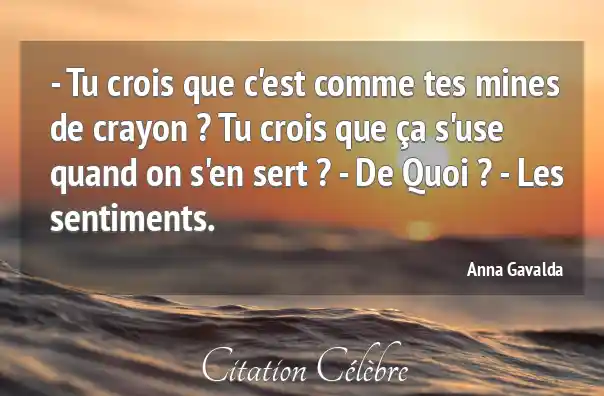 - Tu crois que c'est comme tes mines de crayon ? Tu crois que ça s'use quand on s'en sert ? - De Quoi ? - Les sentiments.