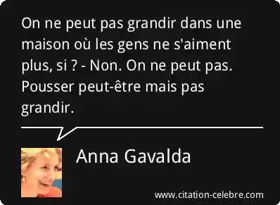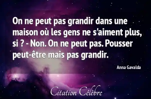 On ne peut pas grandir dans une maison où les gens ne s'aiment plus, si ? - Non. On ne peut pas. Pousser peut-être mais pas grandir.