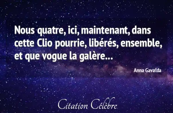 Nous quatre, ici, maintenant, dans cette Clio pourrie, libérés, ensemble, et que vogue la galère...