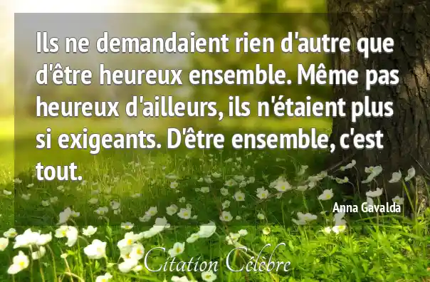 Ils ne demandaient rien d'autre que d'être heureux ensemble. Même pas heureux d'ailleurs, ils n'étaient plus si exigeants. D'être ensemble, c'est tout.