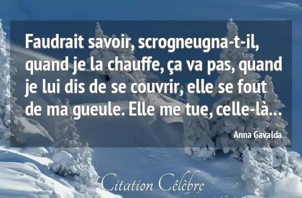 Faudrait savoir, scrogneugna-t-il, quand je la chauffe, ça va pas, quand je lui dis de se couvrir, elle se fout de ma gueule. Elle me tue, celle-là...