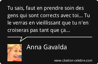 Tu sais, faut en prendre soin des gens qui sont corrects avec toi... Tu le verras en vieillissant que tu n'en croiseras pas tant que ça...