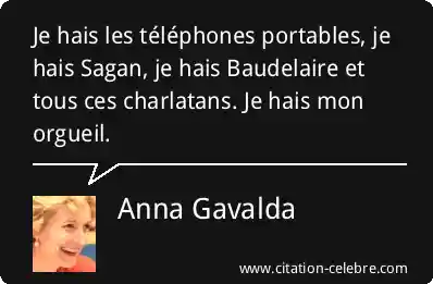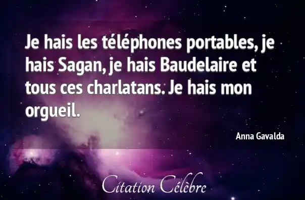 Je hais les téléphones portables, je hais Sagan, je hais Baudelaire et tous ces charlatans. Je hais mon orgueil.