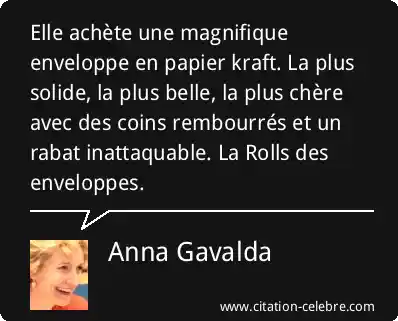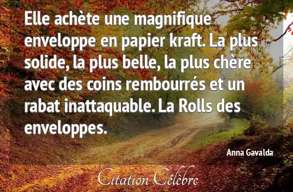 Elle achète une magnifique enveloppe en papier kraft. La plus solide, la plus belle, la plus chère avec des coins rembourrés et un rabat inattaquable. La Rolls des enveloppes.