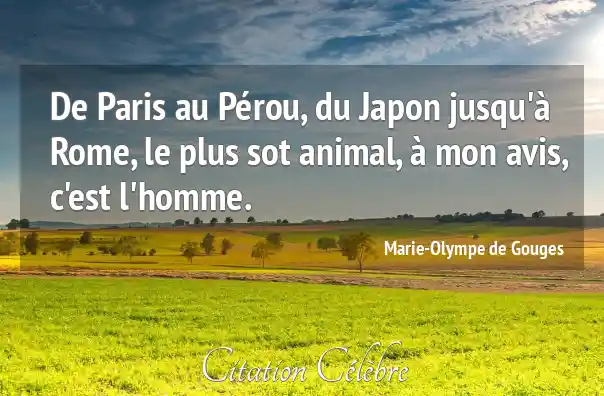 De Paris au Pérou, du Japon jusqu'à Rome, le plus sot animal, à mon avis, c'est l'homme.
