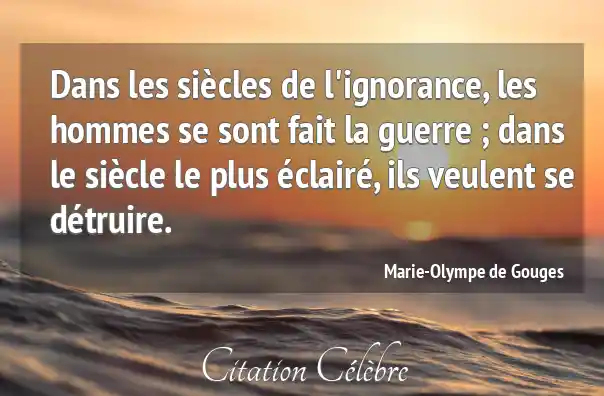 Dans les siècles de l'ignorance, les hommes se sont fait la guerre ; dans le siècle le plus éclairé, ils veulent se détruire.