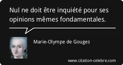 Le principe de toute souveraineté réside essentiellement dans la Nation, qui n'est que la réunion de la Femme et de l'Homme : nul corps, nul individu, ne peut exercer d'autorité qui n'en émane expressément.