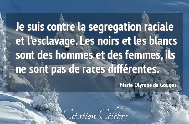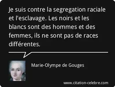Je suis contre la segregation raciale et l'esclavage. Les noirs et les blancs sont des hommes et des femmes, ils ne sont pas de races différentes.