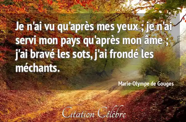 Je n'ai vu qu'après mes yeux ; je n'ai servi mon pays qu'après mon âme ; j'ai bravé les sots, j'ai frondé les méchants.