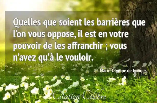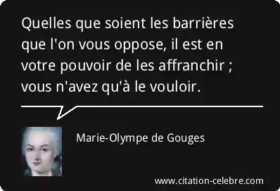 Quelles que soient les barrières que l'on vous oppose, il est en votre pouvoir de les affranchir ; vous n'avez qu'à le vouloir.