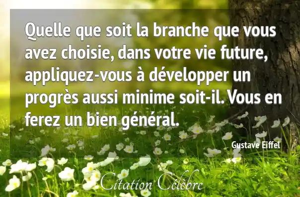 Quelle que soit la branche que vous avez choisie, dans votre vie future, appliquez-vous à développer un progrès aussi minime soit-il. Vous en ferez un bien général.