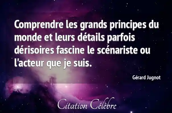 Comprendre les grands principes du monde et leurs détails parfois dérisoires fascine le scénariste ou l'acteur que je suis.