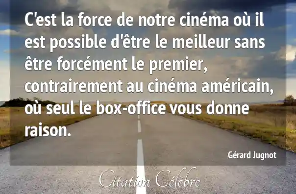 C'est la force de notre cinéma où il est possible d'être le meilleur sans être forcément le premier, contrairement au cinéma américain, où seul le box-office vous donne raison.