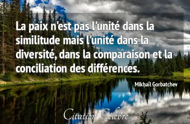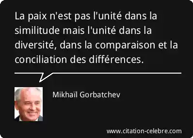 La paix n'est pas l'unité dans la similitude mais l'unité dans la diversité, dans la comparaison et la conciliation des différences.