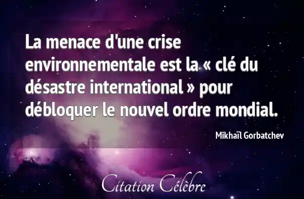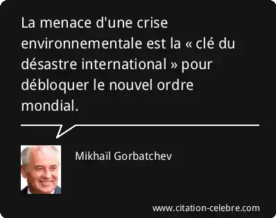 La menace d'une crise environnementale est la « clé du désastre international » pour débloquer le nouvel ordre mondial.