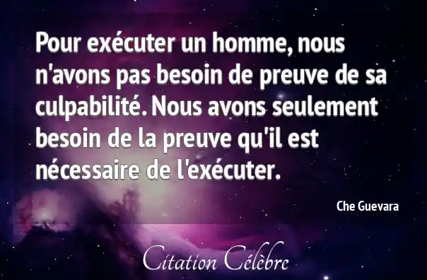 Pour exécuter un homme, nous n'avons pas besoin de preuve de sa culpabilité. Nous avons seulement besoin de la preuve qu'il est nécessaire de l'exécuter.