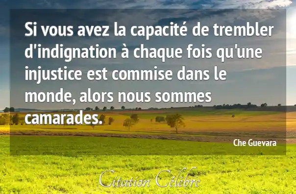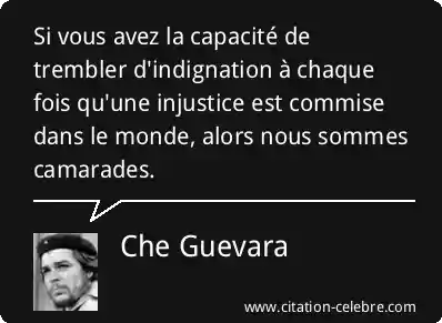 Si vous avez la capacité de trembler d'indignation à chaque fois qu'une injustice est commise dans le monde, alors nous sommes camarades.