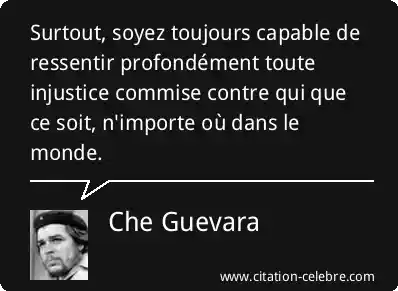 Surtout, soyez toujours capable de ressentir profondément toute injustice commise contre qui que ce soit, n'importe où dans le monde.