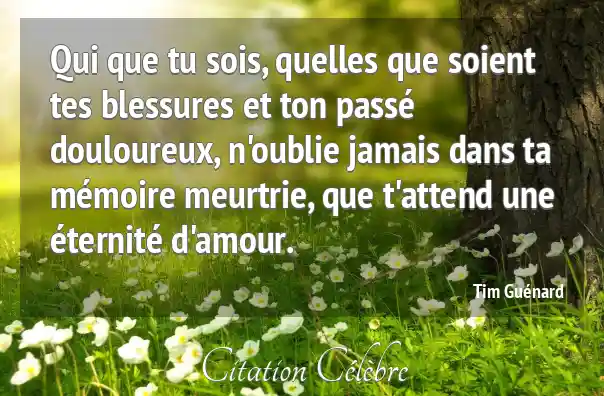 Qui que tu sois, quelles que soient tes blessures et ton passé douloureux, n'oublie jamais dans ta mémoire meurtrie, que t'attend une éternité d'amour.