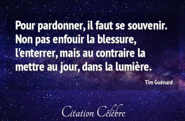 Pour pardonner, il faut se souvenir. Non pas enfouir la blessure, l'enterrer, mais au contraire la mettre au jour, dans la lumière.