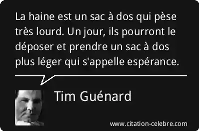 La haine est un sac à dos qui pèse très lourd. Un jour, ils pourront le déposer et prendre un sac à dos plus léger qui s'appelle espérance.