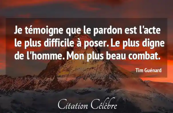 Je témoigne que le pardon est l'acte le plus difficile à poser. Le plus digne de l'homme. Mon plus beau combat.