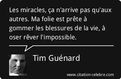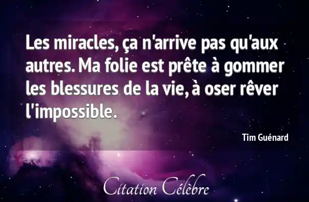 Les miracles, ça n'arrive pas qu'aux autres. Ma folie est prête à gommer les blessures de la vie, à oser rêver l'impossible.