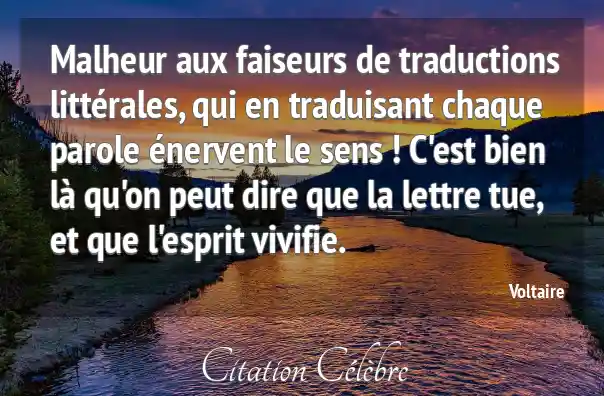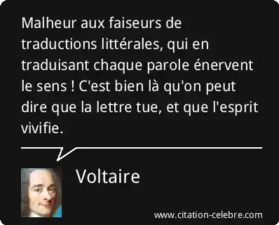 Malheur aux faiseurs de traductions littérales, qui en traduisant chaque parole énervent le sens ! C'est bien là qu'on peut dire que la lettre tue, et que l'esprit vivifie.