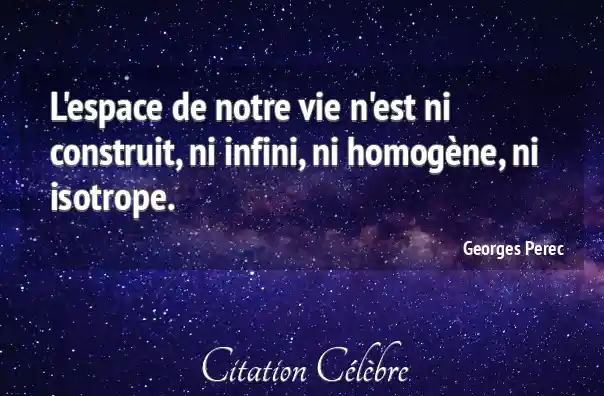 L'espace de notre vie n'est ni construit, ni infini, ni homogène, ni isotrope.