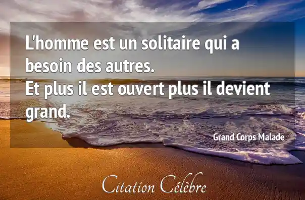 L'homme est un solitaire qui a besoin des autres. Et plus il est ouvert plus il devient grand.