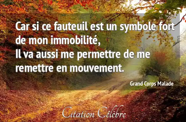 Car si ce fauteuil est un symbole fort de mon immobilité,