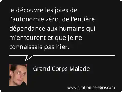 Je découvre les joies de l'autonomie zéro, de l'entière dépendance aux humains qui m'entourent et que je ne connaissais pas hier.