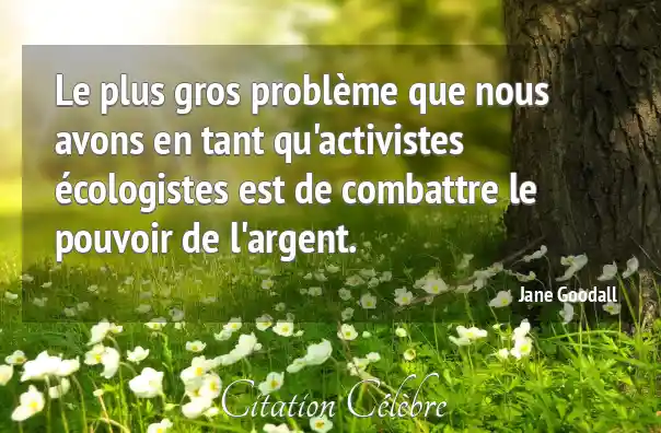 Le plus gros problème que nous avons en tant qu'activistes écologistes est de combattre le pouvoir de l'argent.