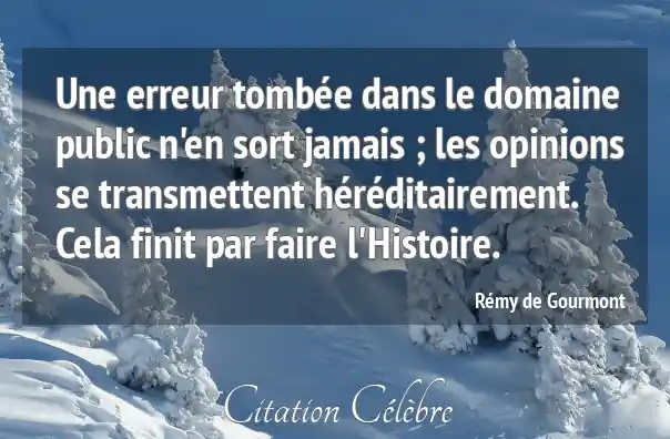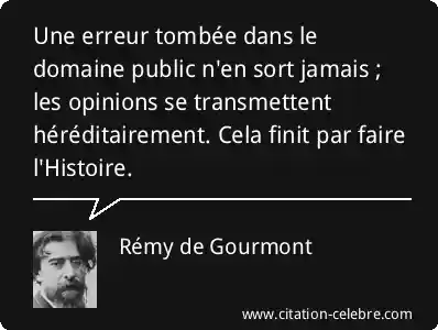 Une erreur tombée dans le domaine public n'en sort jamais ; les opinions se transmettent héréditairement. Cela finit par faire l'Histoire.