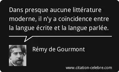 Dans presque aucune littérature moderne, il n'y a coïncidence entre la langue écrite et la langue parlée.
