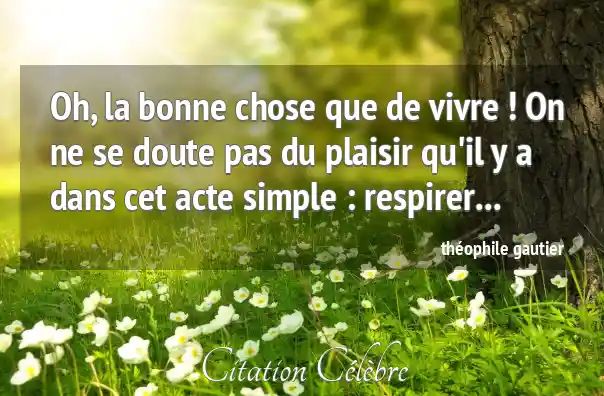 Oh, la bonne chose que de vivre ! On ne se doute pas du plaisir qu'il y a dans cet acte simple : respirer...