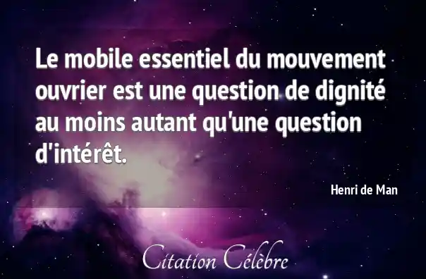Le mobile essentiel du mouvement ouvrier est une question de dignité au moins autant qu'une question d'intérêt.
