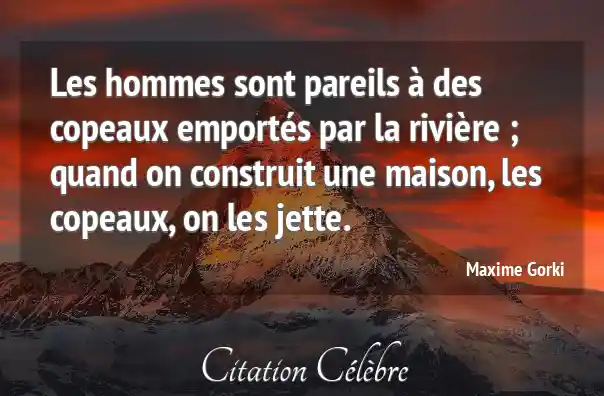 Les hommes sont pareils à des copeaux emportés par la rivière ; quand on construit une maison, les copeaux, on les jette.