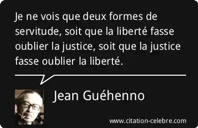 Je ne vois que deux formes de servitude, soit que la liberté fasse oublier la justice, soit que la justice fasse oublier la liberté.