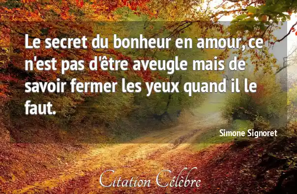Le secret du bonheur en amour, ce n'est pas d'être aveugle mais de savoir fermer les yeux quand il le faut.
