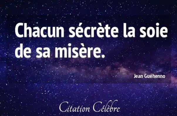 Chacun sécrète la soie de sa misère.
