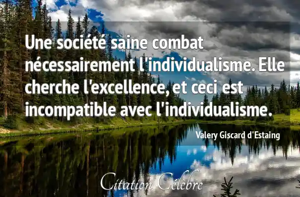 Une société saine combat nécessairement l'individualisme. Elle cherche l'excellence, et ceci est incompatible avec l'individualisme.