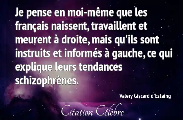 Je pense en moi-même que les français naissent, travaillent et meurent à droite, mais qu'ils sont instruits et informés à gauche, ce qui explique leurs tendances schizophrènes.