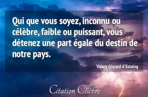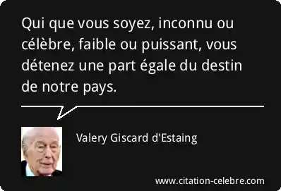 Qui que vous soyez, inconnu ou célèbre, faible ou puissant, vous détenez une part égale du destin de notre pays.