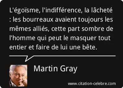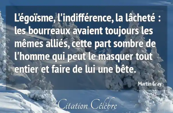L'égoïsme, l'indifférence, la lâcheté : les bourreaux avaient toujours les mêmes alliés, cette part sombre de l'homme qui peut le masquer tout entier et faire de lui une bête.