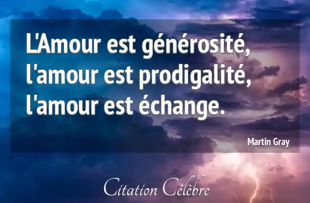 L'Amour est générosité, l'amour est prodigalité, l'amour est échange.
