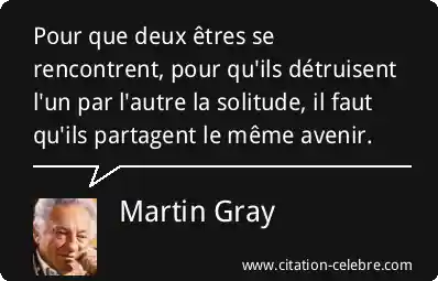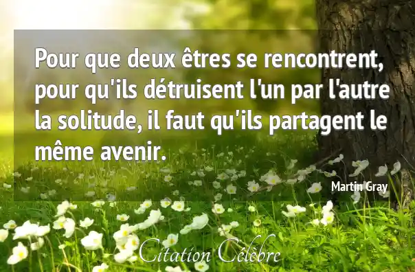 Pour que deux êtres se rencontrent, pour qu'ils détruisent l'un par l'autre la solitude, il faut qu'ils partagent le même avenir.