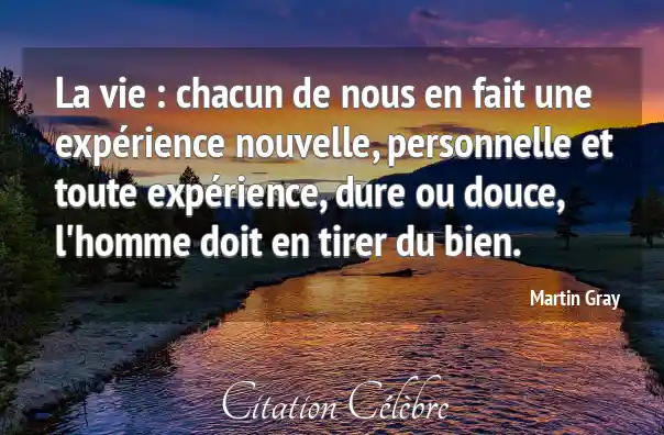 La vie : chacun de nous en fait une expérience nouvelle, personnelle et toute expérience, dure ou douce, l'homme doit en tirer du bien.