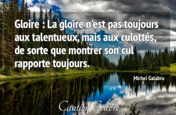 Gloire : La gloire n'est pas toujours aux talentueux, mais aux culottés, de sorte que montrer son cul rapporte toujours.